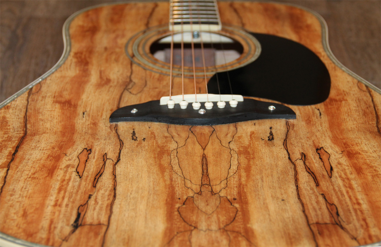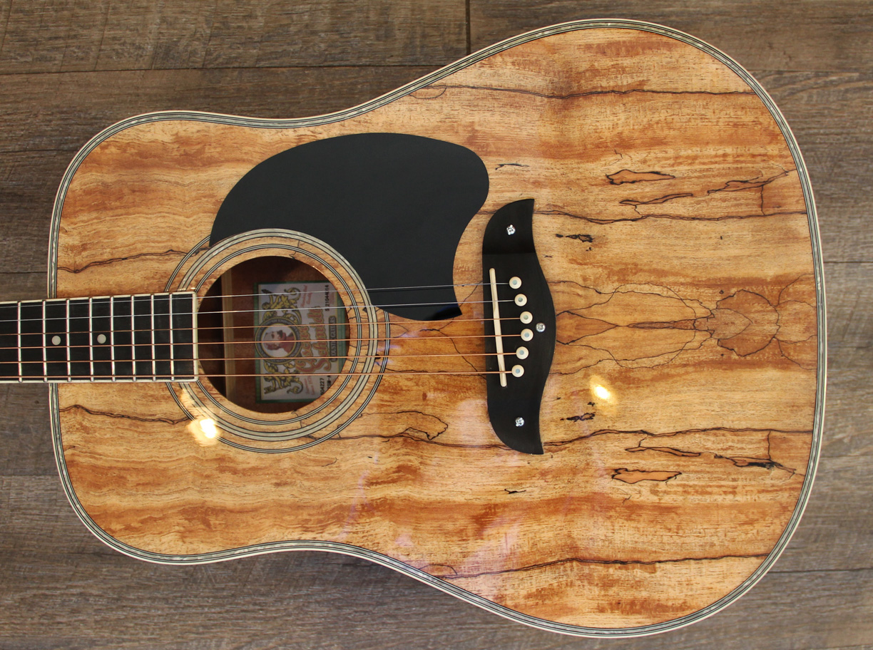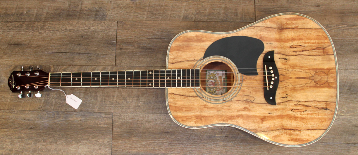 In stock! Oscar Schmidt Model OG2SM-A, made by Washburn. Beautiful spalted maple laminate top! This is used and is being sold as is. The bridge has three small bolts. This one sounds great and plays easily! Does not include case or gigbag. Shipping is additional.
