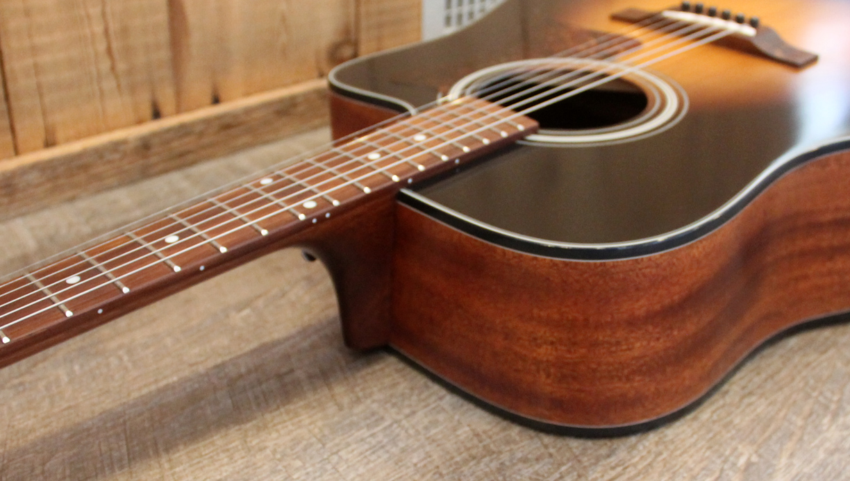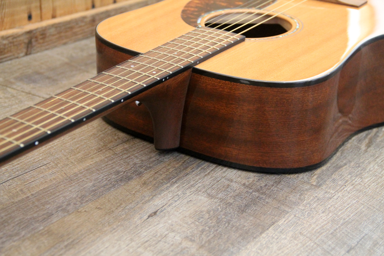 In stock! Model DR-400 MCE VSS. All solid wood, cutaway, factory pickup. Small dents and dings overall. All tuning gears work easily. Sounds and play great! All set up and ready to go home! This is a consignment instrument. Does not include case or gigbag. Shipping is additional.